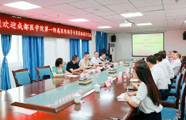 2023年07月21日7月18日下午,成都医学院第一附属医院纪委书记李鸿、副院长周鹏一行莅临金堂县第二人民医院指导交流,医院党委书记张俊,党委副书记、院长肖祥军等班子成员及相关科室负责人陪同。双方围绕新医院规划建设、医院业务发展和学科建设等内容进行了深入交流。会后,李书记一行实地参观了淮州新城三级医院建设项目。(金堂县第二人民医院陈奕名、医师报陈远航)